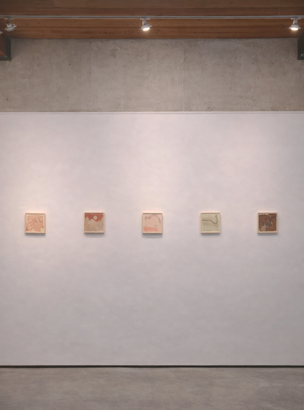 Gallery images including the installed “skins” along with the square panel encaustic pieces.